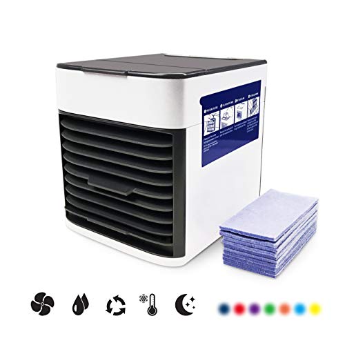 - ❉ Compact & Stylish: 6.5*6.89*6.69 in square shape, sleek and simple. Chakwan arctic Air cooler gives you the best features of both fans and air conditioning in one, compact unit that's also a night light. The blue LED lights can be adjust the brightness by the button. It is a perfect gift for Men and Women in this summer.