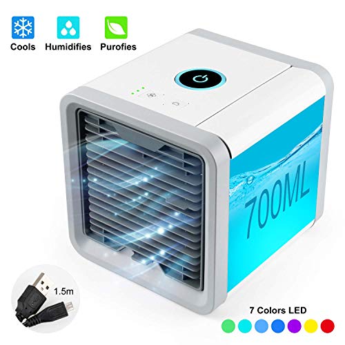 - 3-in-1 Air Cooler: The Mini Air Conditioner features a cooling, humidification and air cleaning function that keeps you away from hot weather and dry air, reducing allergens, dust and smoke.