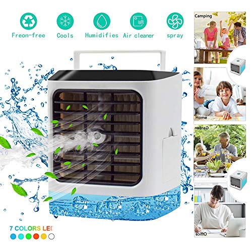 3-in-1 portable air cooler, evaporative mobile air conditioner, 3-speed 7-color LED light humidifier purifier, personal noise-free USB mini fan, suitable for home office desktop